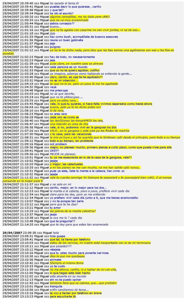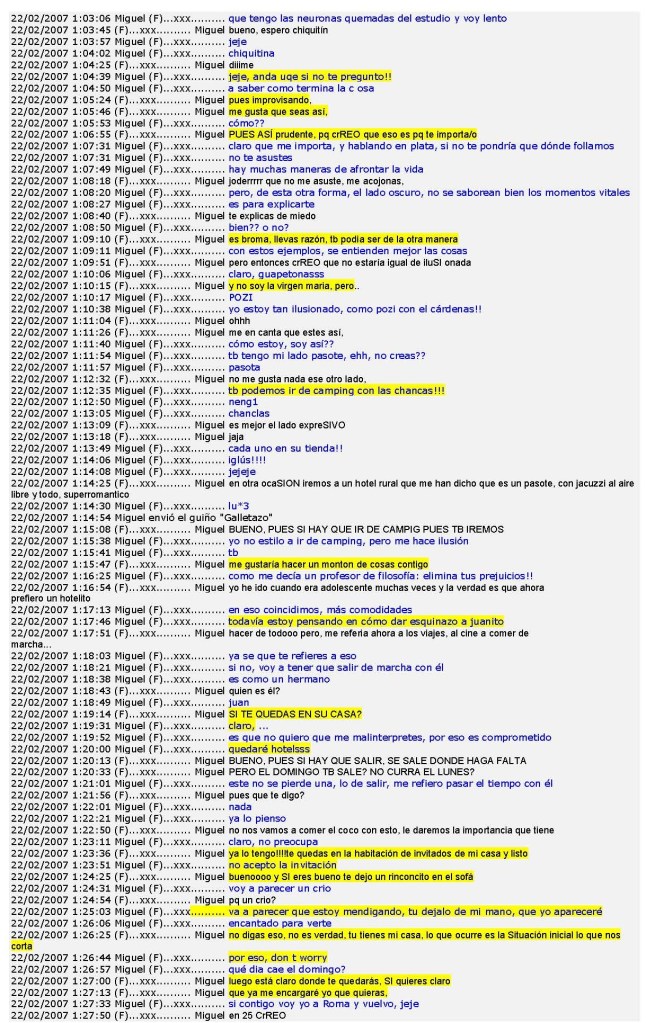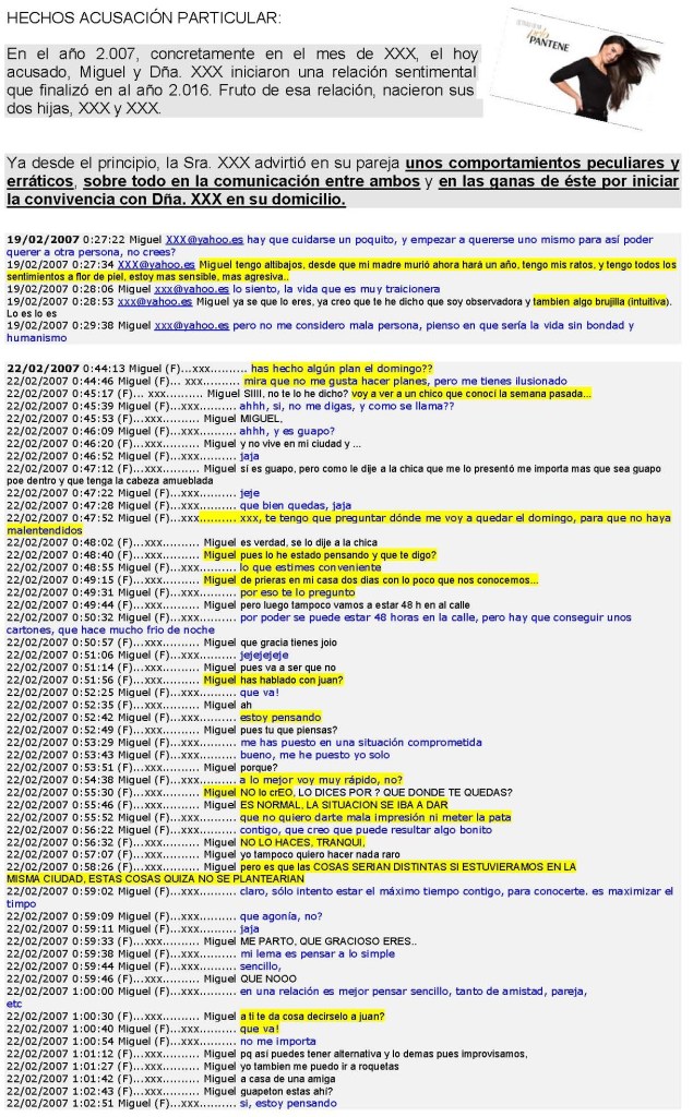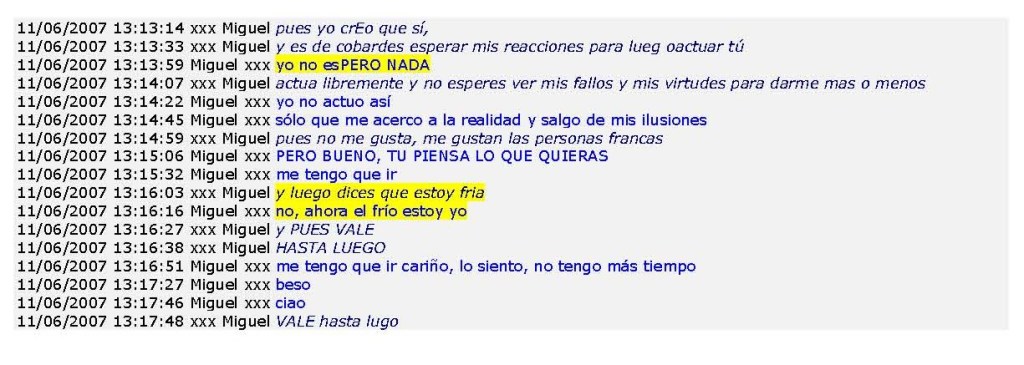 Hasta aquí, entre otras muchas pruebas, se observa una conversación por messenger, donde se constata el total desprecio a la verdad en la narración de los hechos, a día de hoy «presuntamente».